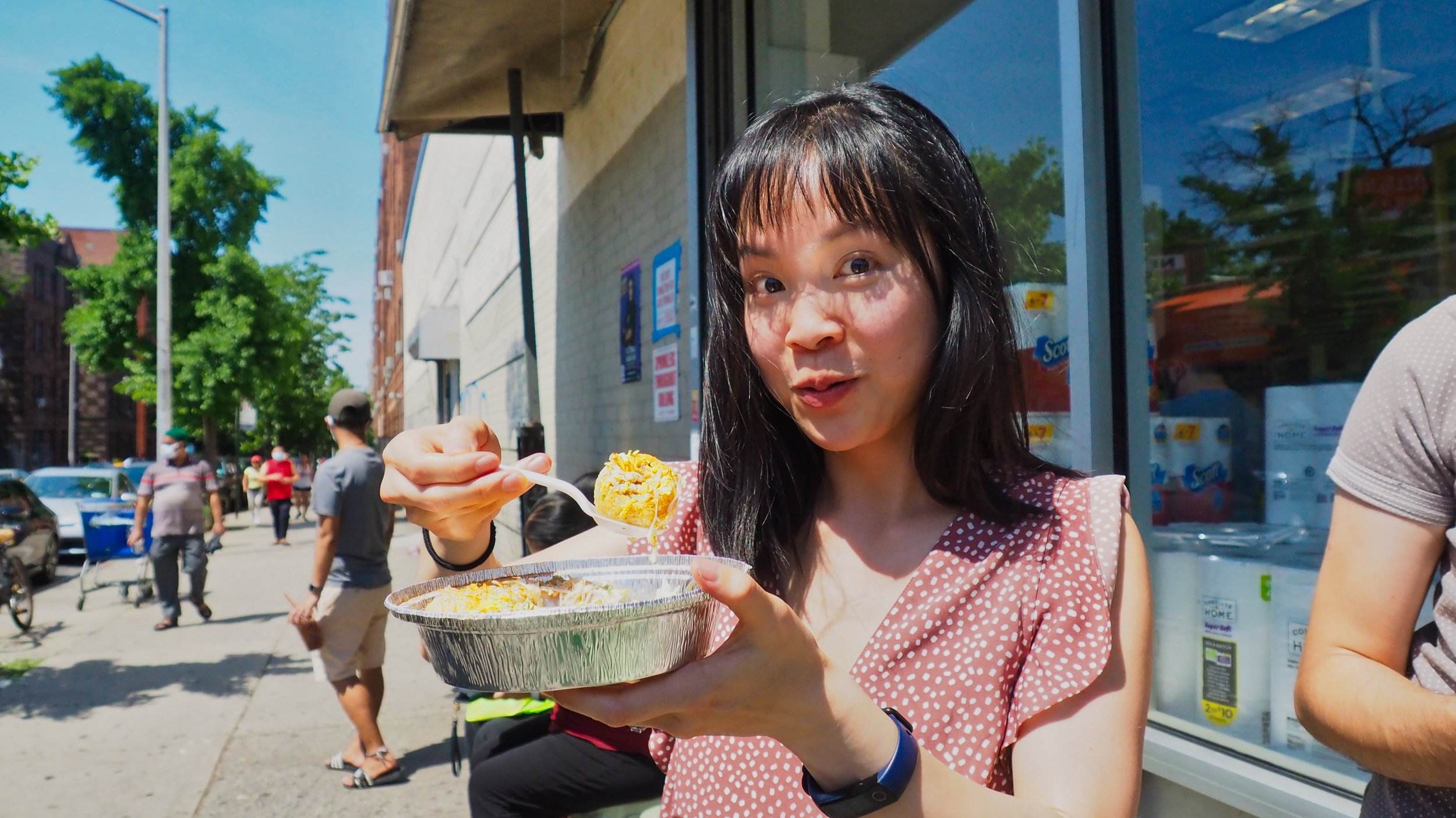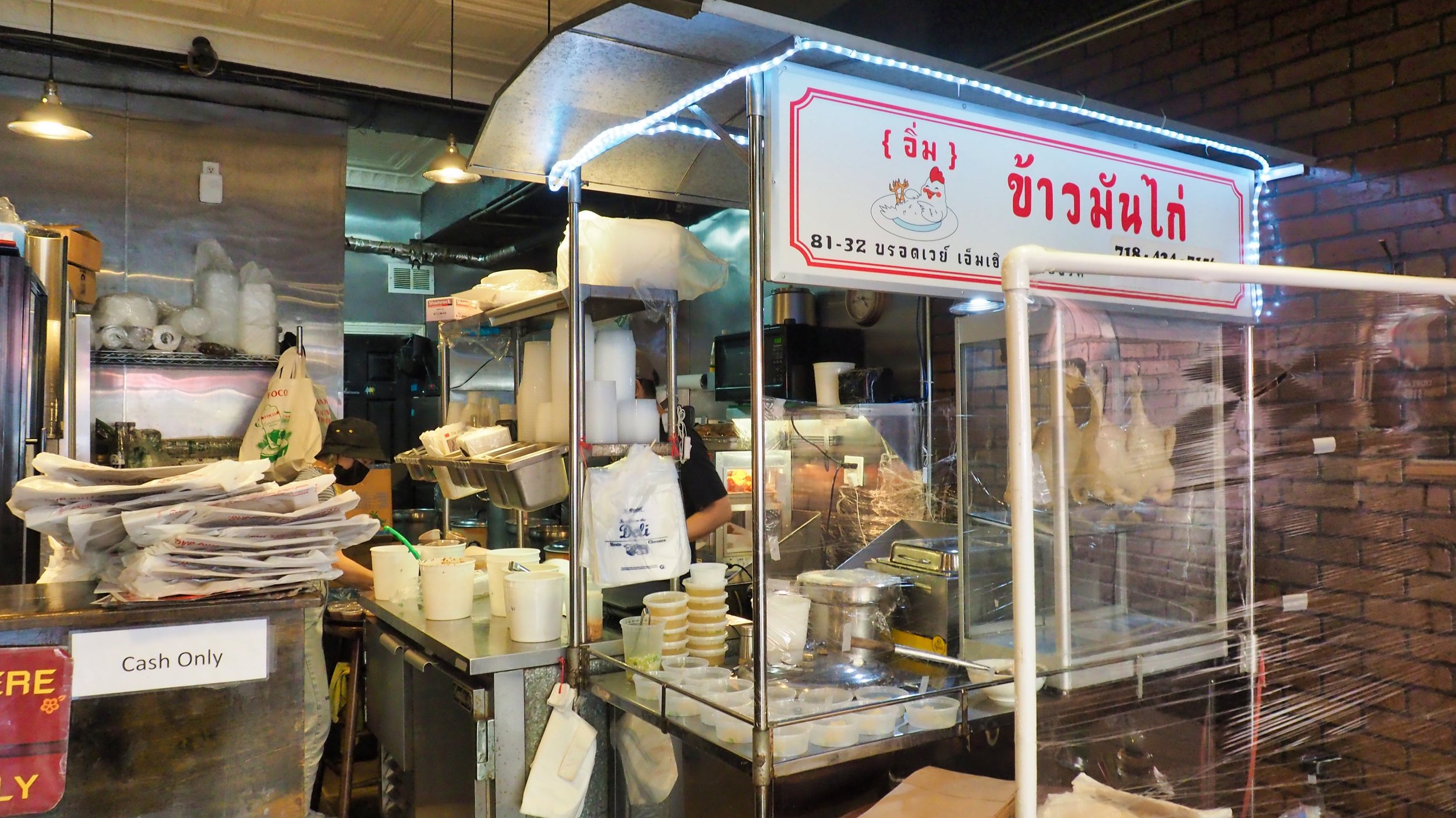 • Mr. Khao Man Gai used to have a food cart located at 73rd St and Roosevelt Ave, but the latest Yelp reviews for this cart date back to 2019 and as of 2022, Google Maps now pins the location now to 26-32 Jackson Ave, Queens, NY 11101. If the cart is still there, opening hours used to be 7:30pm-12:30am on weekdays only.I was super excited for that Hainan chicken and rice cart, but it didn’t open until dinnertime so we didn’t even go looking for it. Instead, we tried a similar brick-and-mortar chicken rice restaurant in Elmhurst: Eim Khao Mun Kai on Broadway! Eim Khao Mun Kai is a Thai version of the Hainanese chicken rice, but it gets extra points for having a street cart actually parked inside the restaurant!