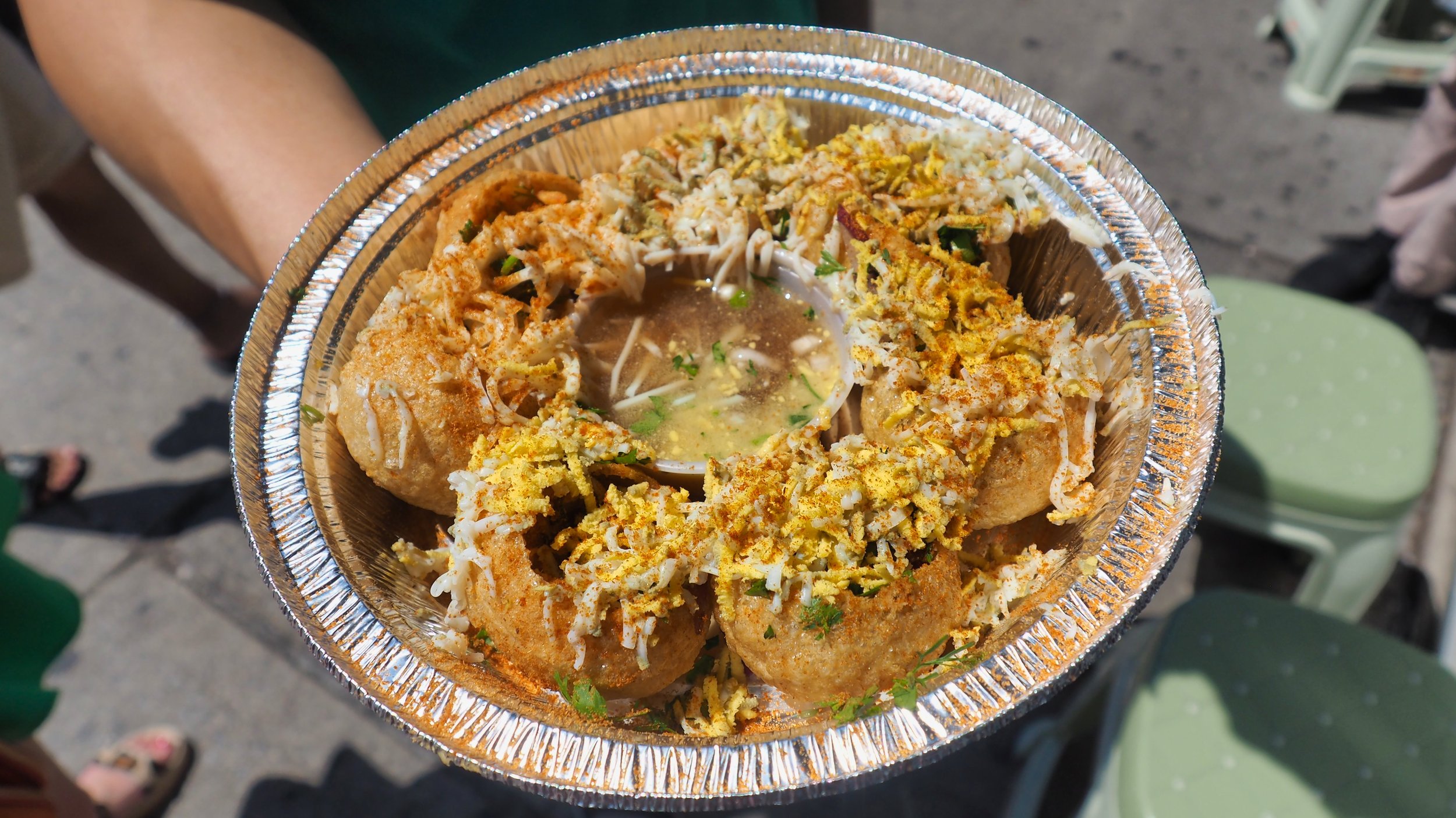 This was the food truck I was most excited to visit, and we happily killed a few hours in the area waiting for opening time at 2pm. Just look at these fuchka! Fuchka are happy little round hollow nests of fried flatbread filled with spiced potatoes and peas, topped with grated egg and aromatics, and dipped in tangy tamarind water. Those colors and shapes and textures— “mmm.” Tong is apparently the first fuchka cart in the USA (as advertised on the side of the cart), but there are now other Bengali food carts in Jackson Heights as well, one of which is parked literally around the corner from Tong.