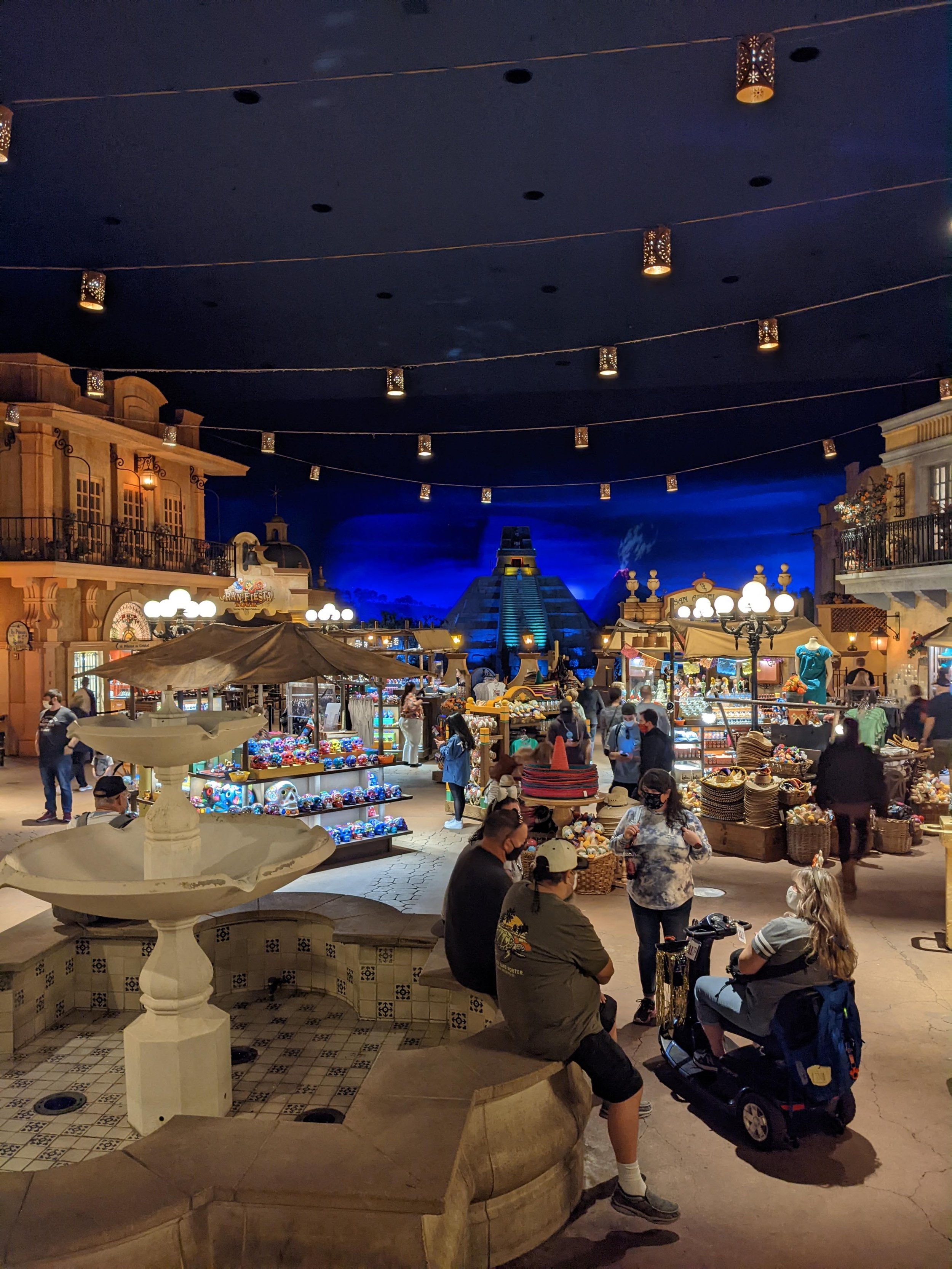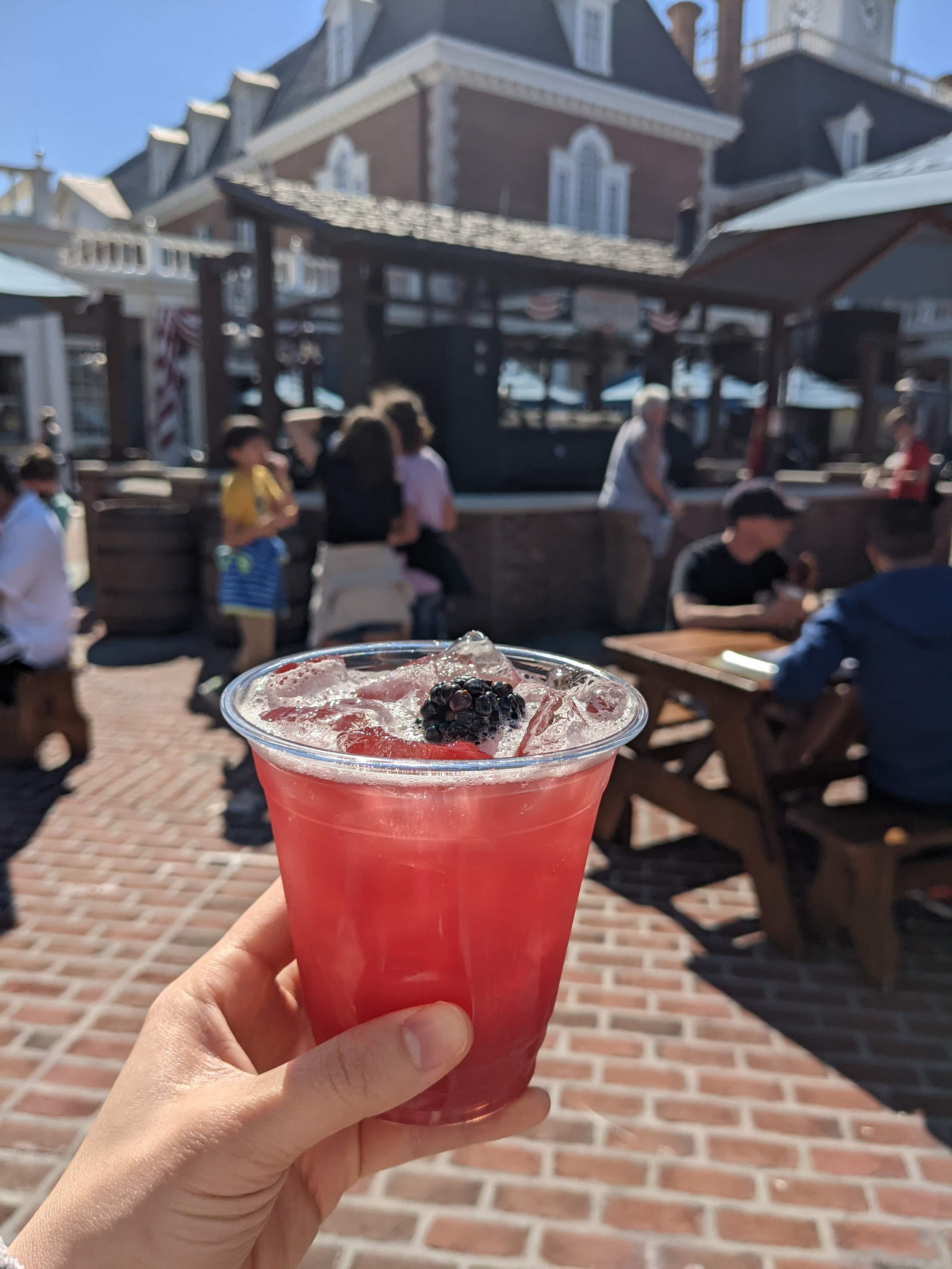 Morocco in Epcot was… just beautiful. The setting was immersive and intricately decorated, colorful yet classy, and I loved just wandering and poking around. Food offerings in Morocco looked delicious, from the small plates at Spice Road Table to baklava and other baked sweets at Oasis Sweets & Sips to kebabs at Tangierine Cafe. I wish we had more time to absorb Morocco. The beverage I would have ordered was the Iced Mint Tea ($14.50, spiked with gin) or the Moroccan Mule ($15.50, made with Figenza Fig Vodka) from Spice Road Table, but we deferred this one as we were rushing off to…