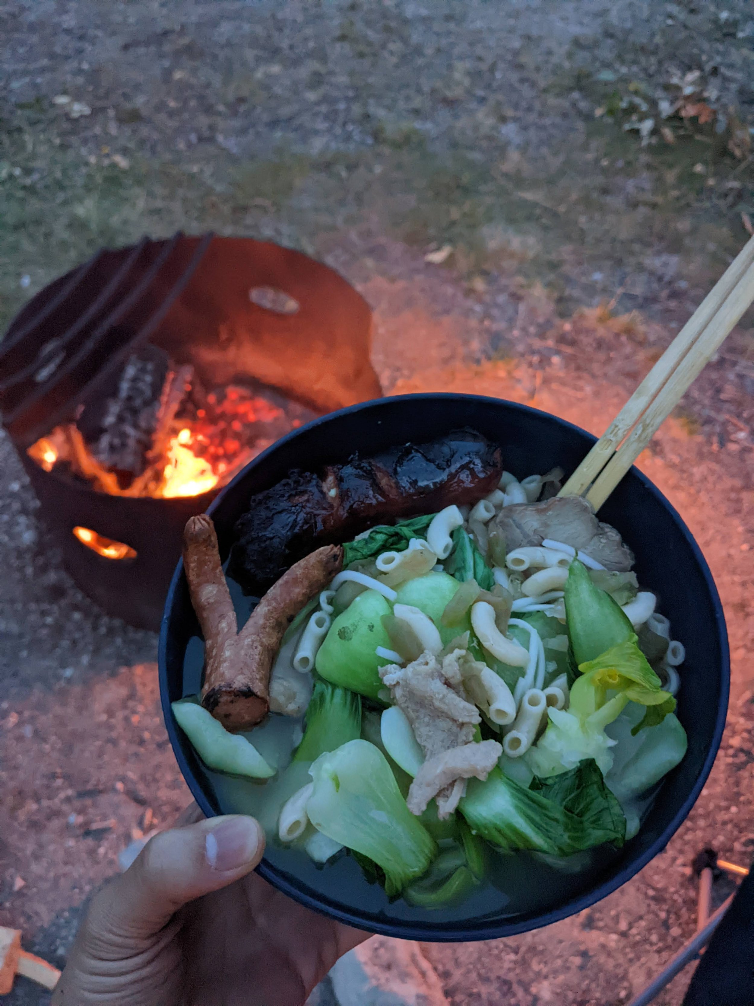 Our first overnight in a national park was at Hoodoo Creek Campground within Yoho National Park. This campground was a cozy little enclave, maybe around 30 unserviced spots arranged in a small circle, completely surrounded by towering mountains. Looking back, this campground boasted the best “camp under the stars within the mountains and feel like a forest creature” vibes of the trip. Hoodoo Creek Campground offered (very non-smelly) pit toilets, fire rings, and firewood. We showered outdoors by the van (check out our van shower set-up!), cooked up some noodle soup along with barbequed sausages, and enjoyed a beer under the stars. There were SO MANY stars.