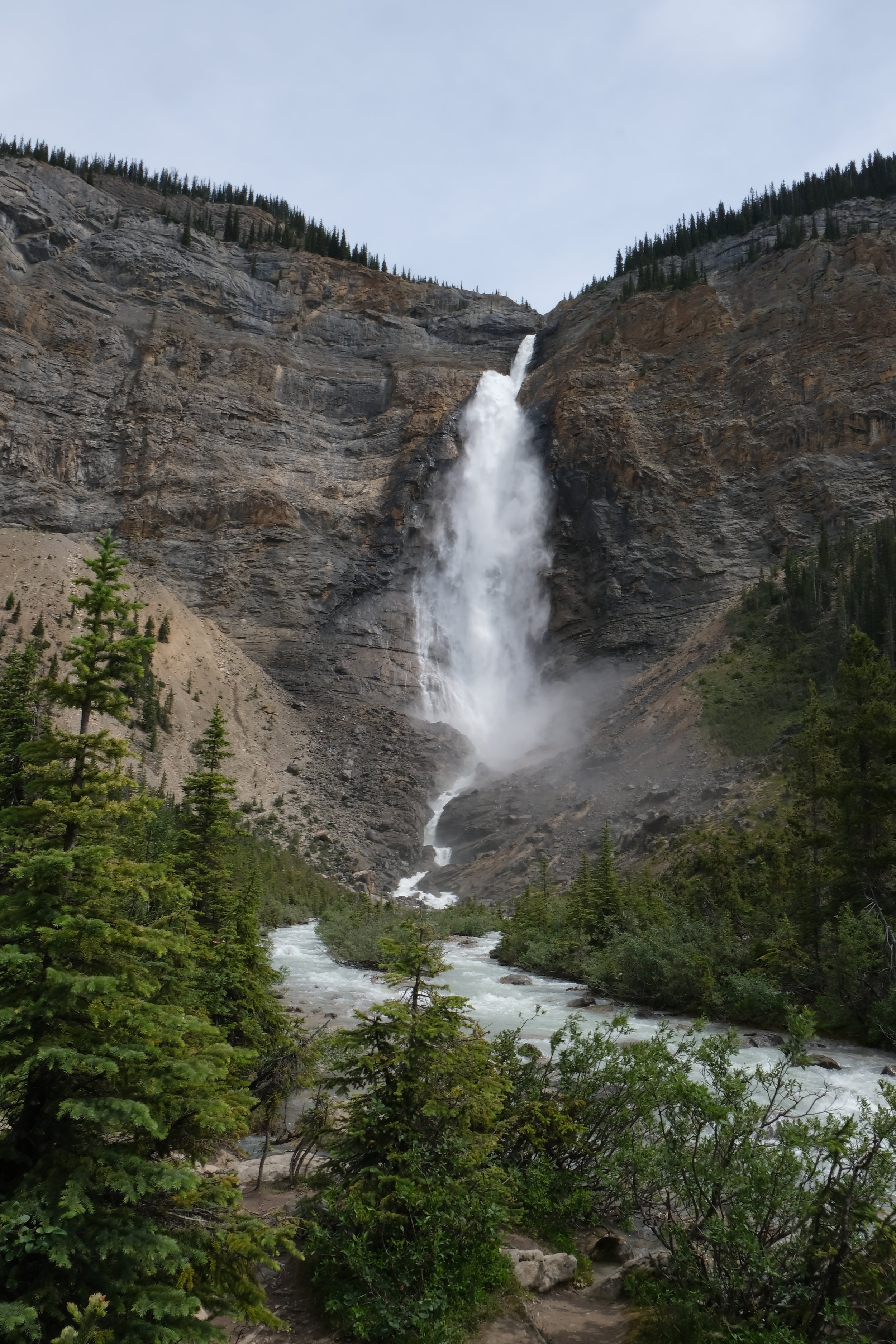 After getting our fill of our first glacial lake of the trip, we continued driving to Takakkaw Falls, also within Yoho National Park. If in a time crunch, you can actually get a good view of the falls from the road on the drive in. Additionally, the parking lot is very close to the base of the falls so you can appreciate the grandeur even if you don’t want to hike in. I recommend taking the time to do the hike, as it gets you much closer. Surprisingly close, like “that waterfall spray will mess up my camera” close. After parking, the 1.2km “hike” starts essentially paved and stays very easily accessible all the way to the base of the falls, close enough to get uncomfortably wet from the spray. At this point you can choose to continue onwards and upwards, climbing the mountain paralleling the falls, if you wish. It reminded me of Cave of the Winds in Niagara Falls.