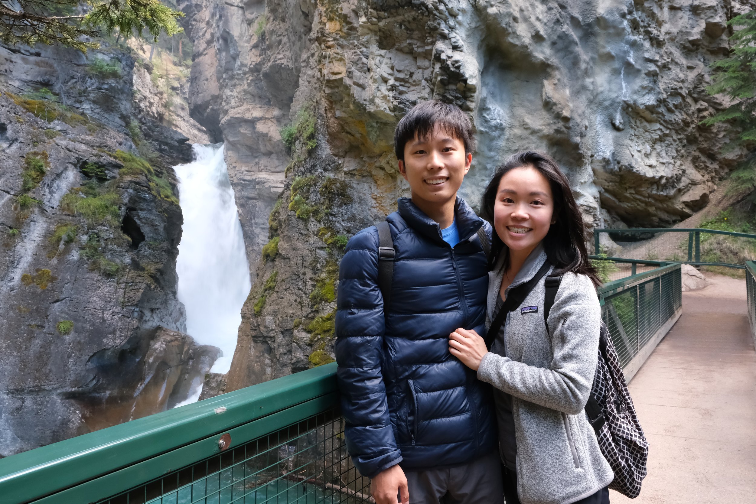 Johnston Canyon is one of Banff’s most popular hikes because the effort:reward ratio is very favorable. The hike to Lower Falls and Upper Falls only takes about 1 hour from the parking lot, and the vast majority of these routes is paved. Take your time meandering along the elevated walkways, feeling the cool moistness of the canyon air on your skin, and marveling at the thick clear water rushing against the canyon walls underneath you. The trick to enjoying Johnston Canyon (as well as much of the rest of Banff National Park) is to plan to arrive early. The Johnston Canyon parking lot filled up by late morning on the Monday morning (in July) that we visited. More importantly, the views of both falls are each spectacular and much less enjoyable later in the day when you have to wait 30 minutes in a crowded line to then jostle for that perfect unobstructed photo. I’d recommend starting the hike by 8:00 or 9:00am to maximize enjoyment of this gorgeous scenery without annoyances from crowds. The viewpoint of Lower Falls is a cozy cave that gets you up and personal with the spray of the roaring falls (make sure your camera is waterproof), whereas the viewpoint of Upper Falls is a really well-placed little deck area perfect for appreciating the height of the waterfall free-falling and pulverizing the rocks below.