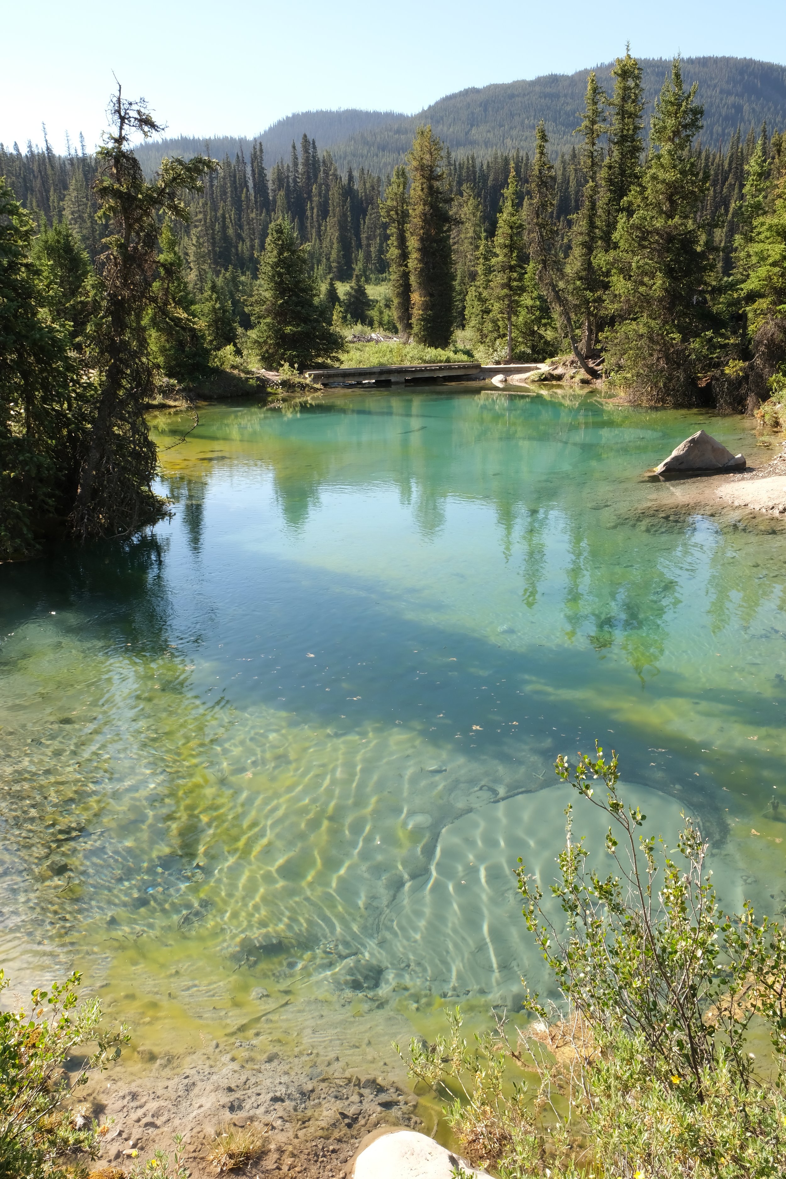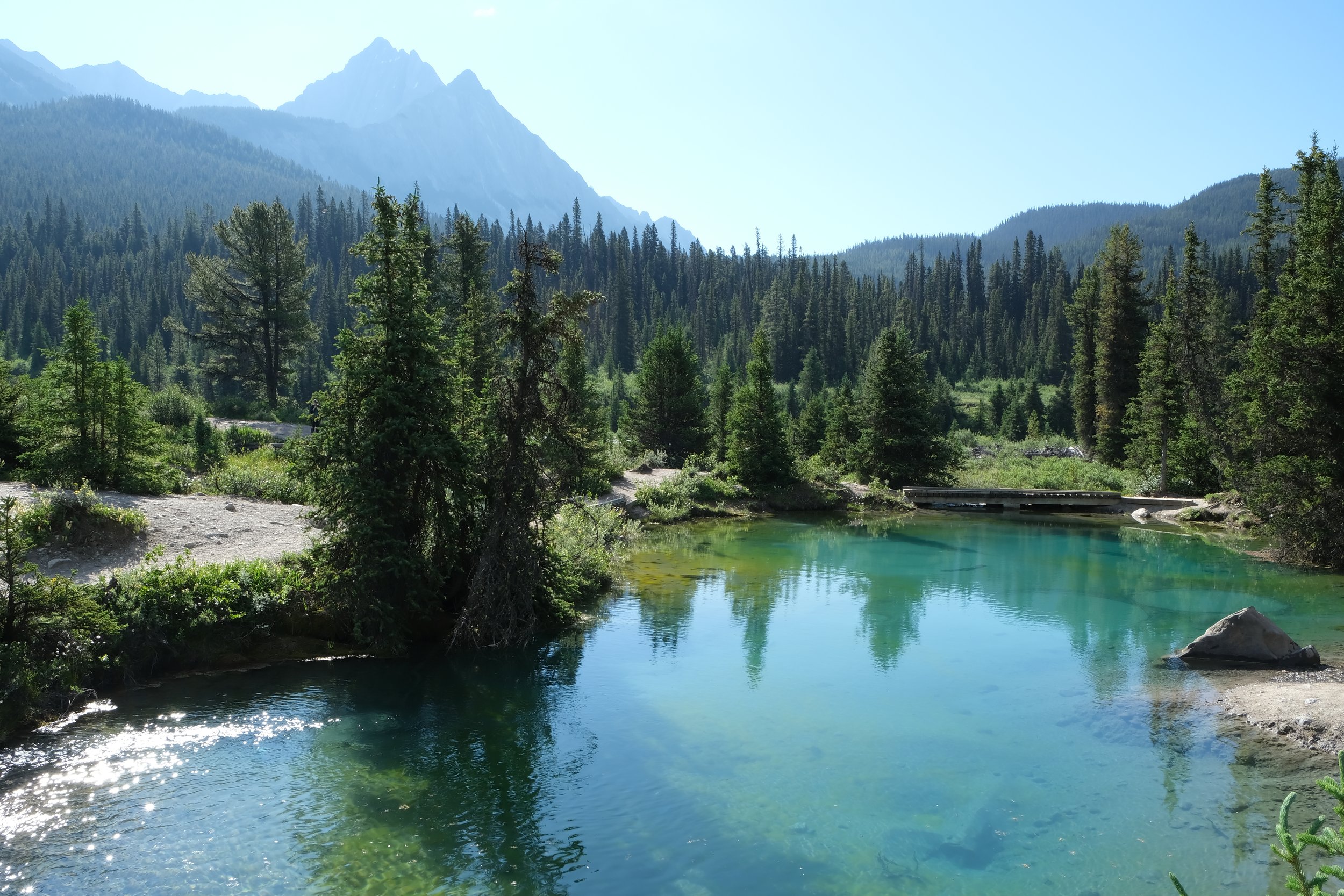 If you have another hour to spare, continue your ascent from Upper Falls and hike to the Ink Pots. The hike itself is an unrelenting uphill battle with only a few clearings in the trees offering good views, but the destination is worth it! The Ink Pots are 5 green-blue pools of colorful murky water that are filled from springs underneath. Take your time to meander among the pools but please do not venture past the marked borders and don’t touch the water! Efforts are in place to conserve and protect the area as much as possible.