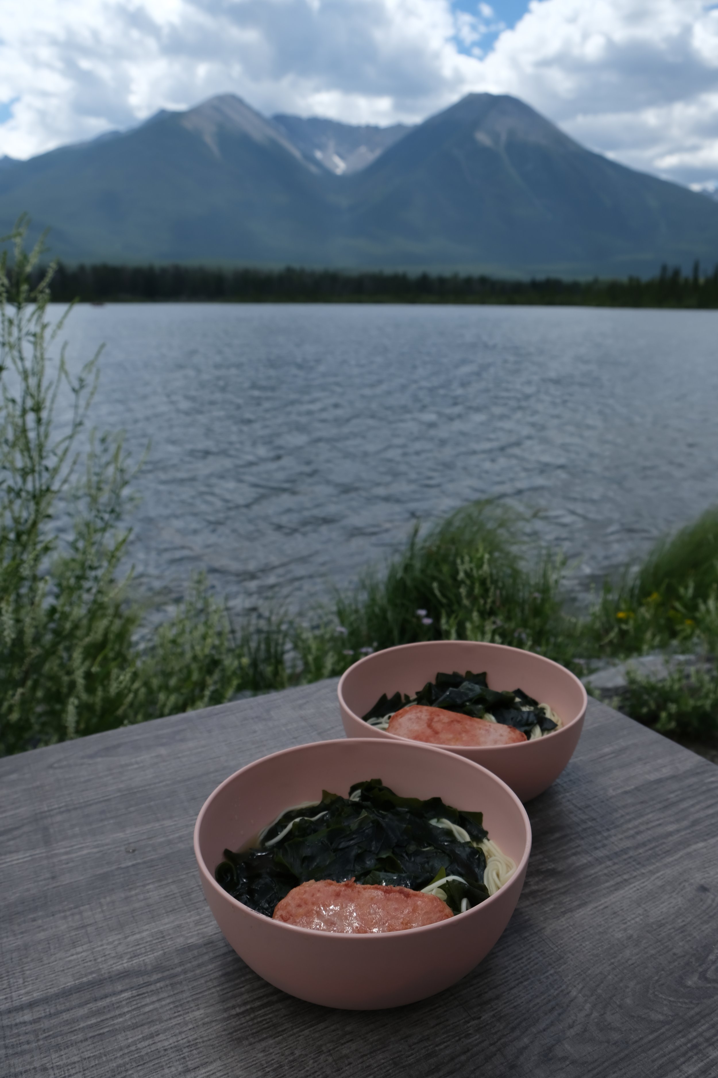 Two hikes down that day, we were ready for some food. Lunchtime was spent back at Vermillion Lakes, where we broke out our campstove and cooked some seaweed noodles and spam.