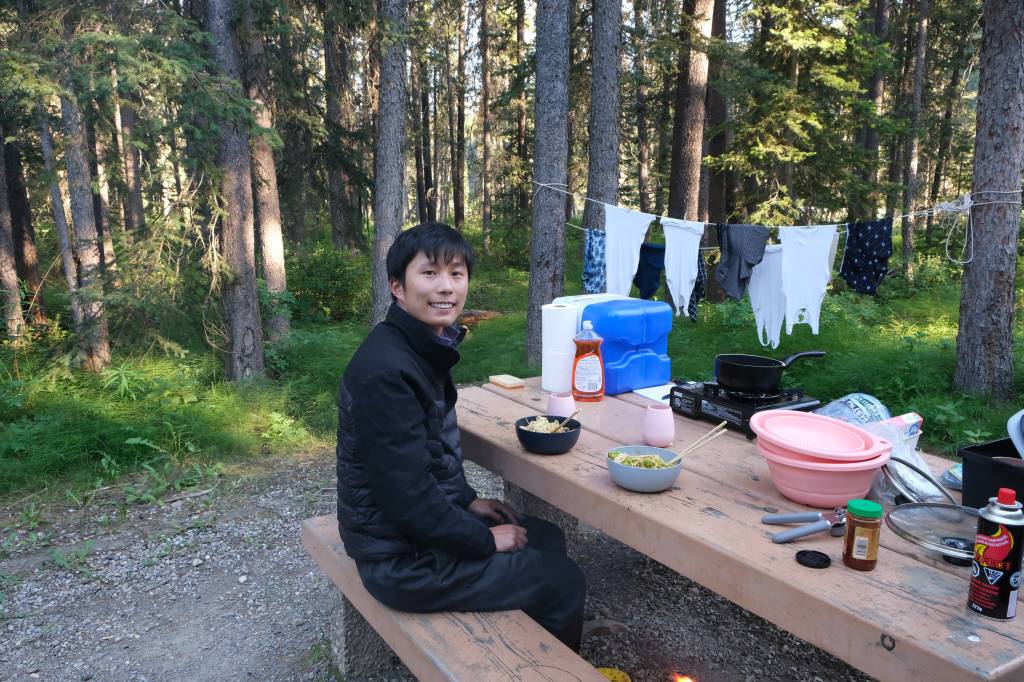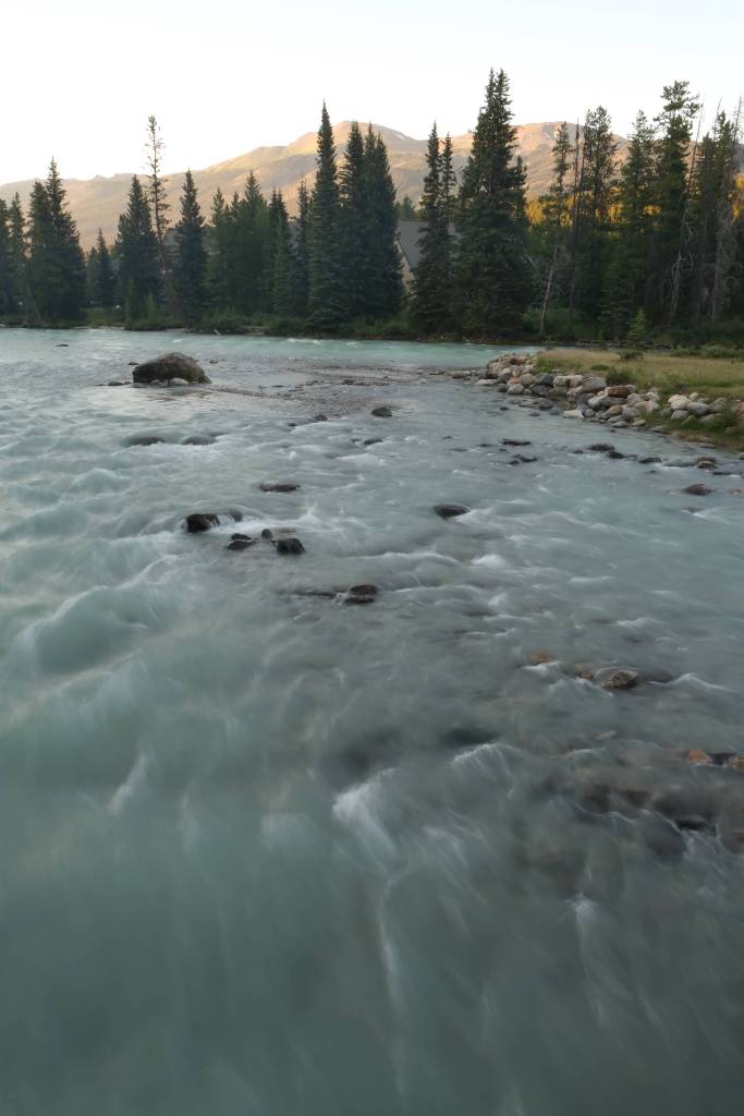That evening we stayed in our DIY camper van at the Lake Louise Campground which straddles Bow River. This campground has hot showers and electricity at the RV sites. The campground is divided into a tent side and a “hard camper only” RV side. The tent portion of the campground is protected by an electric fence to keep bears and other wildlife out of the area. The RV side of the campground is restricted to hard-sided vehicles and campers only, and I suppose in this area campers are on their own to fend off the bears.