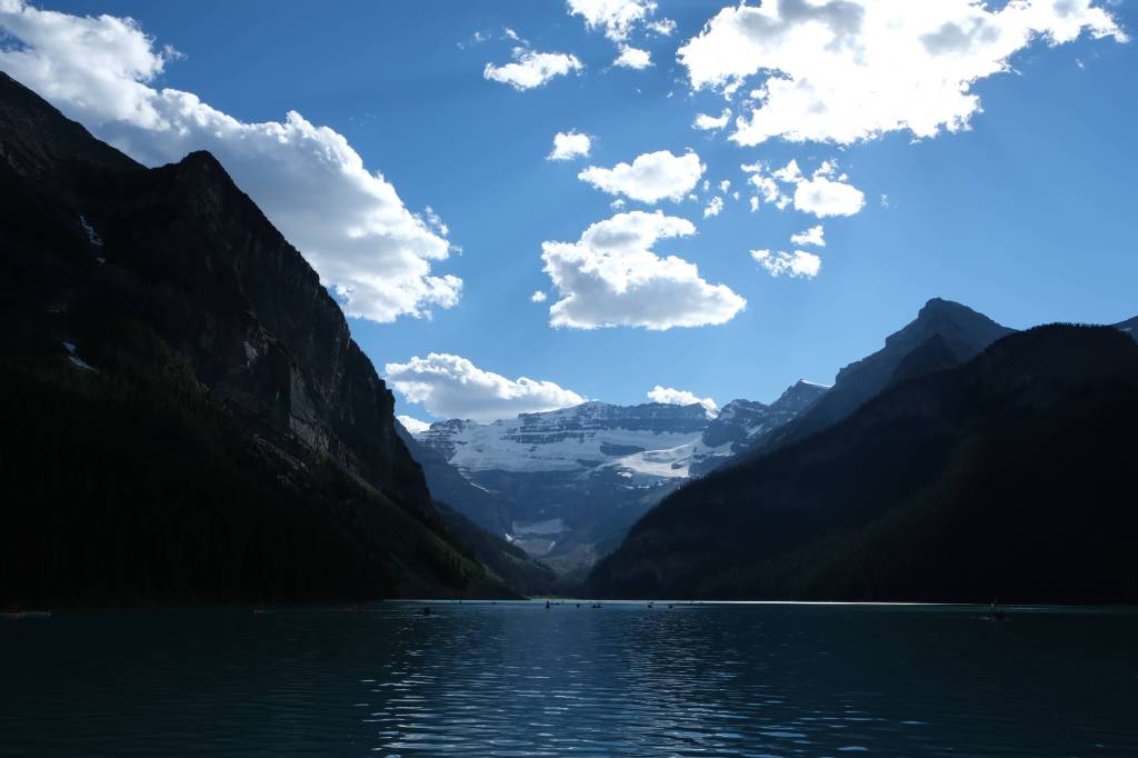 We filled our day at Lake Louise with 10 hours of hiking 20 kilometers from Lake Louise to Mirror Lake, to Lake Agnes Tea House, to Little Beehive, to Big Beehive, to the Plain of Six Glaciers, and then all the way back to Lake Louise. It was awesome to hike all the way down the glacial valley from Lake Louise to face the mountain peak we viewed the sunrise glow on earlier that morning.