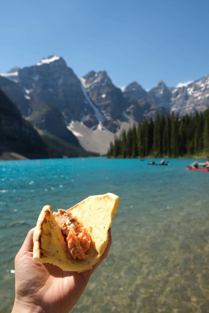 After a fun lunch of Ketchikan salmon pita tacos enjoyed by the waters of Moraine Lake, we boarded the shuttle back to the Parks Canada Park and Ride.