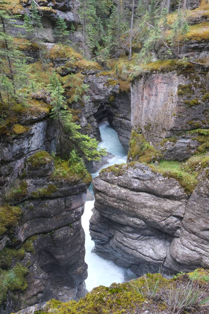From the town of Jasper, head north on Highway 16 towards Edmonton, then at the traffic light turn right to gross the bridge over the Athabasca River. Keep left at the first fork to merge onto Maligne Lake Road. Continue on this road until you see signs for Maligne Canyon.