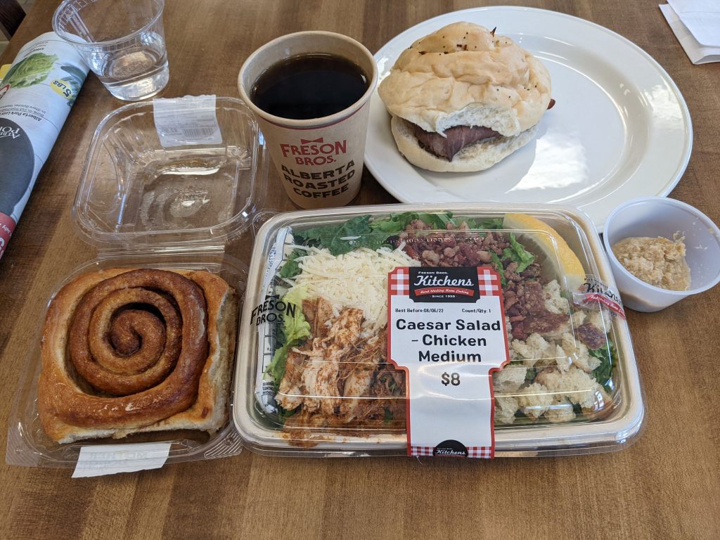 Freson Bro’s — a fresh market chain originally based in Hinton, Alberta in 1955 and now with several locations in Alberta– was the highlight of our unexpected visit to Hinton. We stumbled upon this gem after a quick search for groceries. We indeed bought groceries, but also ate a full lunch at the Freson Bro’s food court. Things on the menu we loved: spicy chicken Caesar salad, Beef on Bun sandwich, sourdough cinnamon bun.