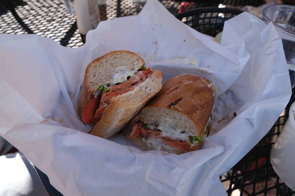 We didn’t make it very far onto Bainbridge Island after disembarking the ferry before getting lured by the promise of tasty wine at Fletcher Bay Winery. This winery has a modern interior and relaxing rooftop patio where we enjoyed a couple bottles of wine and a flight tasting.