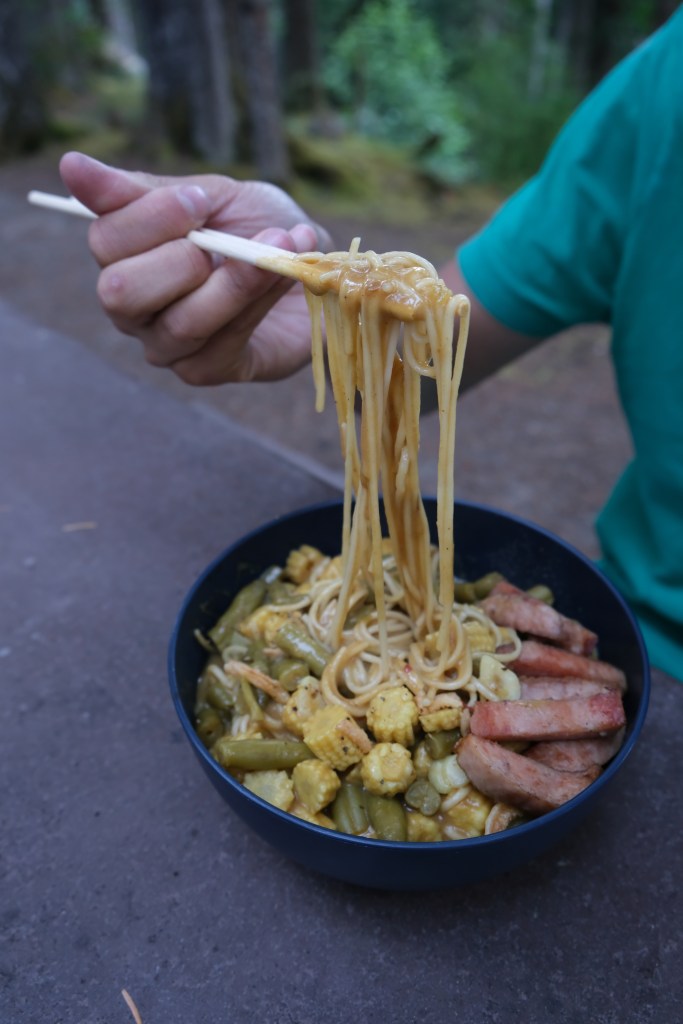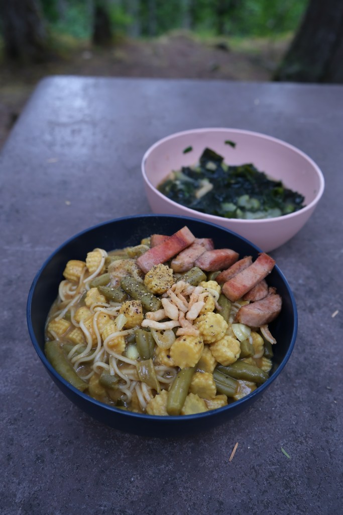 The day came to an end back at our campground home for the night where we cooked up bowls of curry noodles, miso seaweed soup, and roasted veggies.