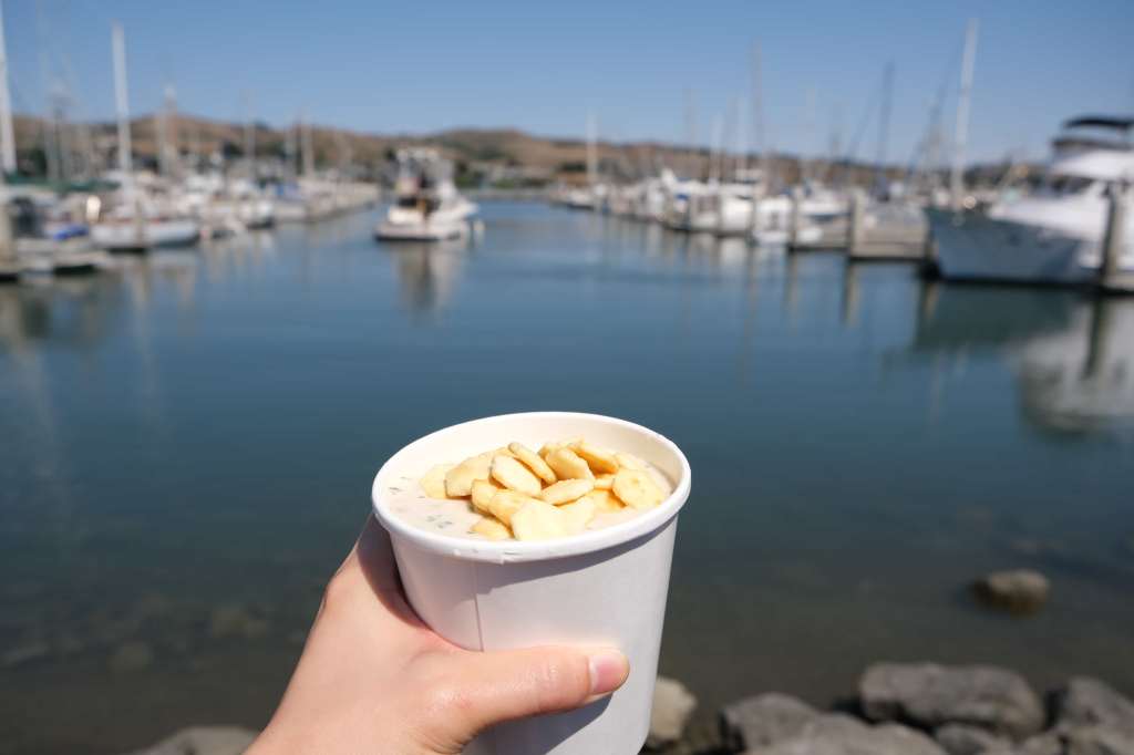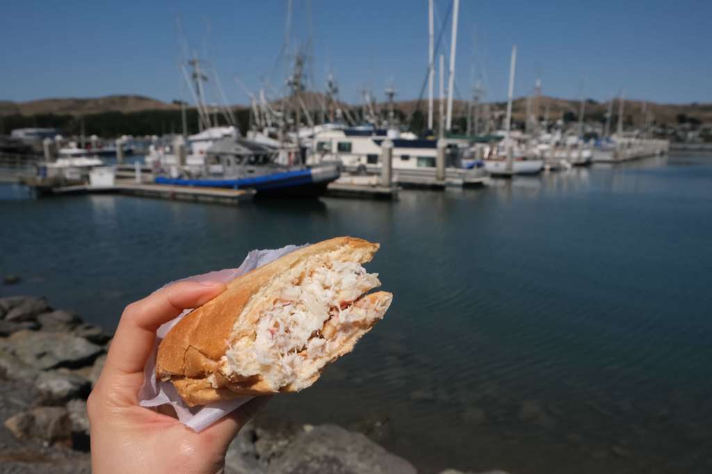 Heading north, we drove to Bodega Bay on the west shoreline. Lunch was planned at Spud Point Crab Company, a cafe known for clam chowder and seafood sandwiches, both of which we sampled that day. The crab sandwich at Spud Point Crab co. was even better than the crab sandwich from Fisherman’s Wharf in San Francisco from the day before. Spud Point’s crab sandwich had huge, unadulterated chunks of succulent crab. The place is popular so we couldn’t find any spots in their (only outdoor) seating area, but that turned out to be a blessing in disguise as we instead enjoyed our seafood meal gazing out at people driving their boats around the docks.