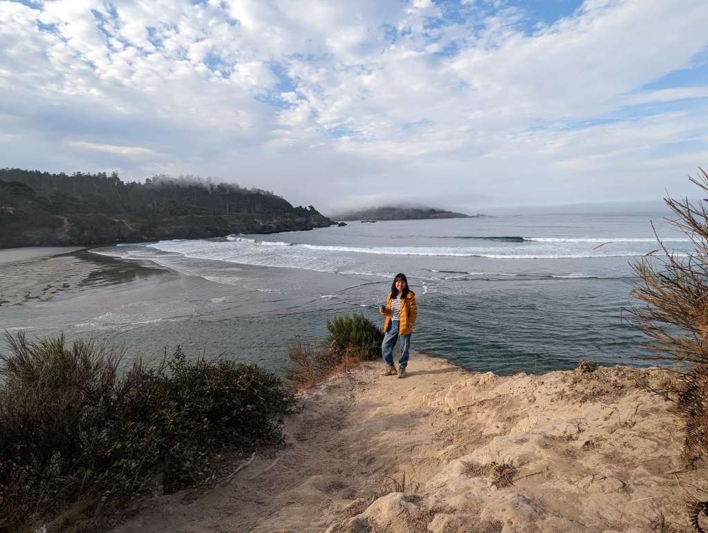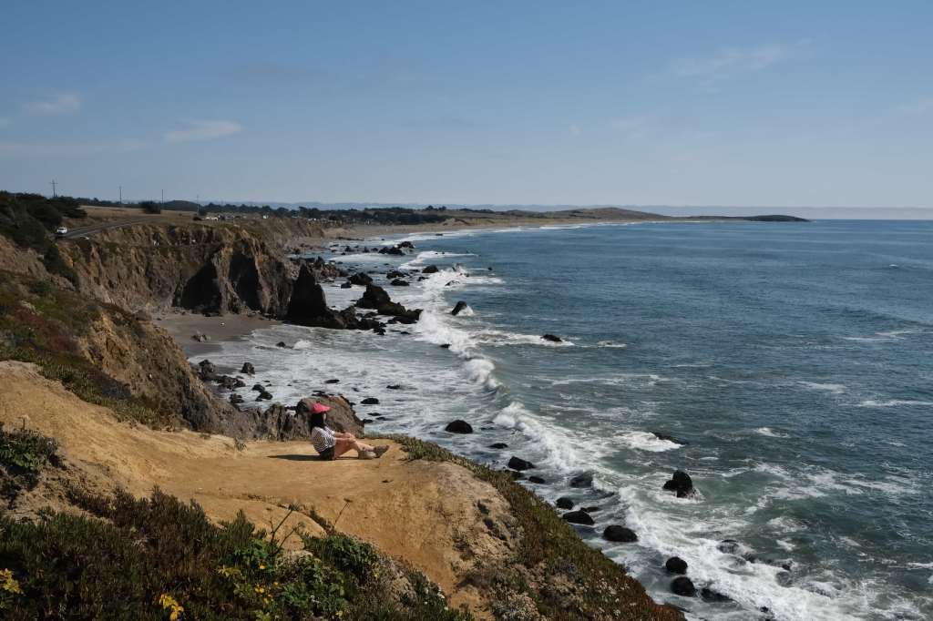 After awakening on our first morning in the van, we made a cup of coffee and stepped outside to the Point Mendocino Trail, an easy coastal hike with amazing views of the Pacific coast. The hike is very well trodden and generally even-footed, taking you through narrow lanes bordered by shoulder-high blades of golden grasses. It parallels the cliff edge overlooking the beach. We spent time watching surfers, birds, and waves while sipping our coffees in peace.