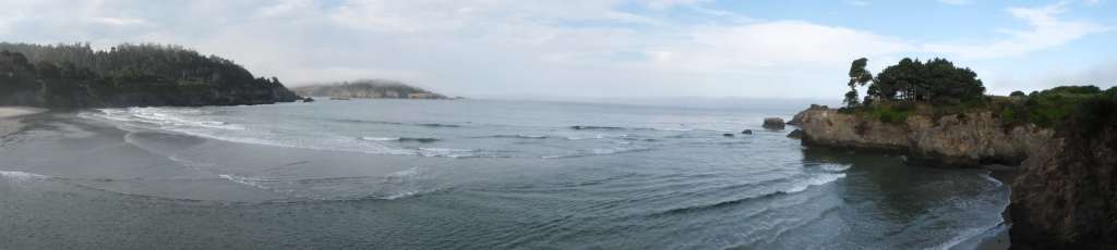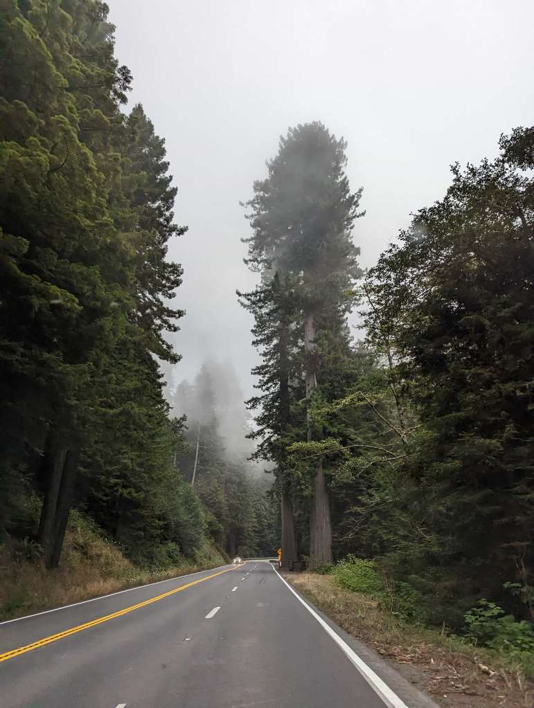 The drive north from San Francisco to the Redwoods can involve either an inland route or the coastal scenic route. I was determined to do it “properly” and chose the coastal route, but I honestly think the inland route might have been the smarter choice. The coastal views seen on the drive shortly after leaving Bodega Bay were absolutely stunning, with crashing white capped waves, cliffs and rock formations, and even a sea arch. However, this initial section of the drive was the most scenic of the entire way up to Mendocino, and it was all before the fork in the road where one chooses the inland versus coastal roads. Meaning, you’re going to get the best sea view right at the beginning of your drive north regardless of which route you choose. The rest of the scenic coastal route was indeed scenic, but most of the road was not actually right by the ocean so the view was actually of a winding road through grassy fields atop rolling hills and trees. And when I say winding, I mean winding. This route is probably a blast to drive in a small car or even on a motorcycle, but was unnerving in a huge camper van. I would hazard a guess that the inland route is straighter (less cliffs require less hairpin turns) and more fuel-efficient. Also, the daily fog tends to rise up and blanket everything, hindering visibility on these narrow winding roads.
