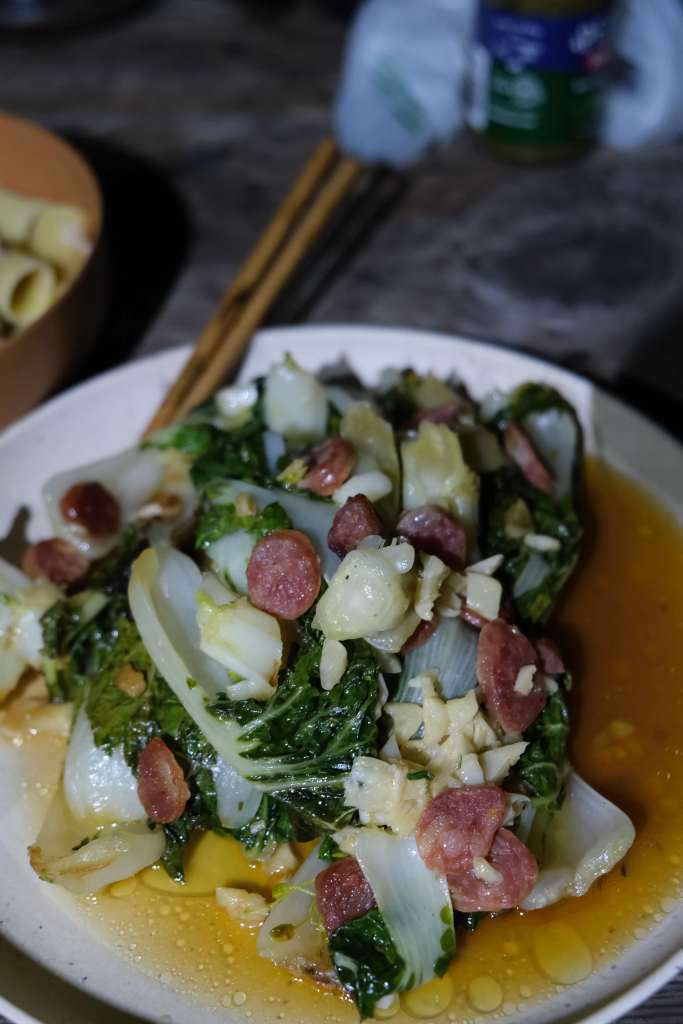 We parked our home on wheels in a lot in Mendocino and settled in for the night. Our first “van-cooked” dinner featured rigatoni with cacio e pepe sauce with avocado and Chinese sausage.