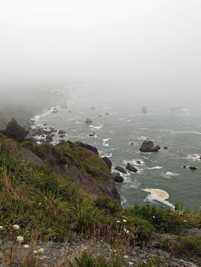 We didn’t have high expectations of any view whatsoever as the fog was so thick but we were actually able to see the ocean waves and rocks below peeking through the fog! The sounds of the crashing waves was like a sound machine. We tried to record it but it didn’t do the real experience justice.