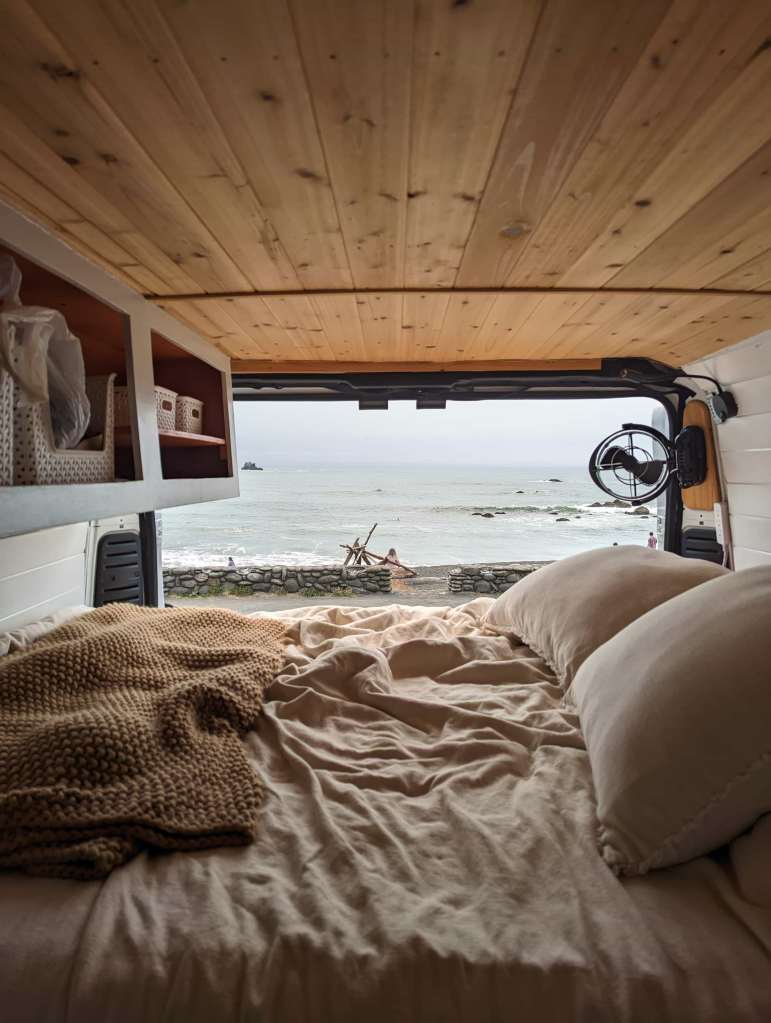 This shorter trip couldn’t justify the headache of furnishing a DIY camper van from scratch like we did for our Canada trip. This time, we chose the much more convenient (and much more expensive) option – a camper van rental from Outdoorsy.