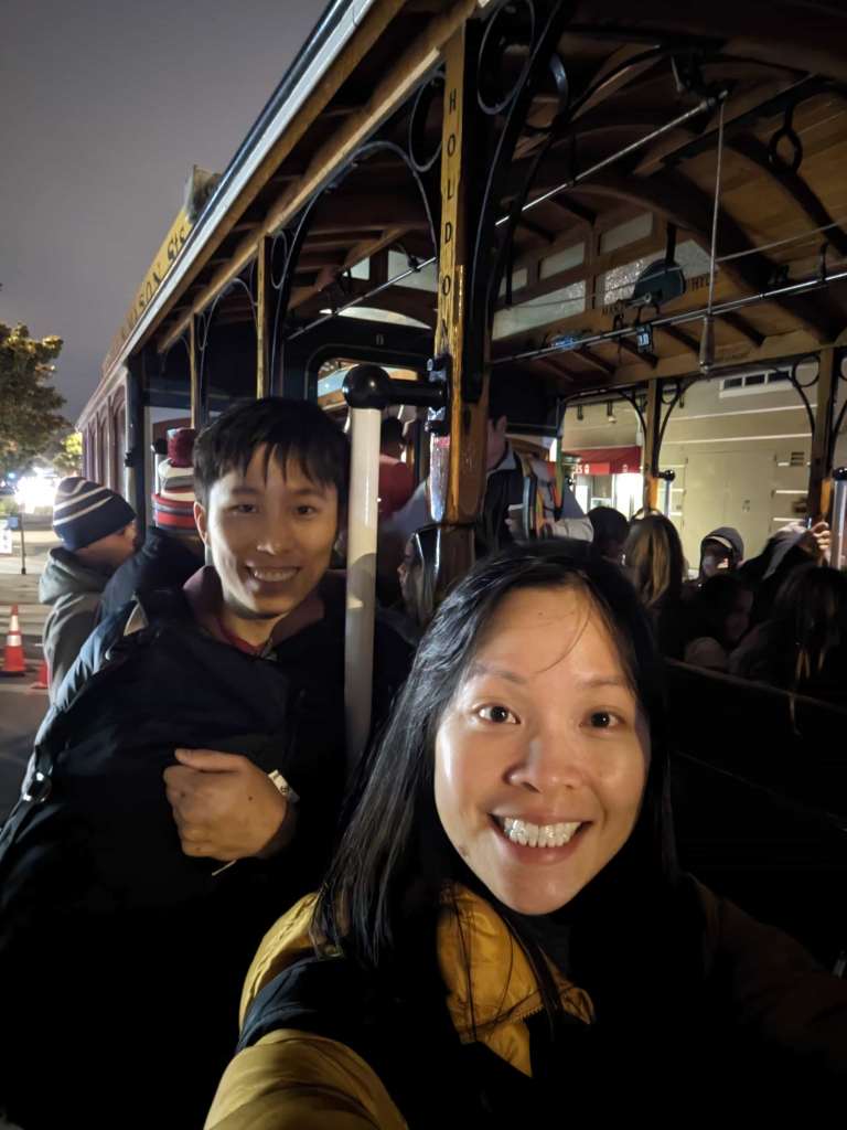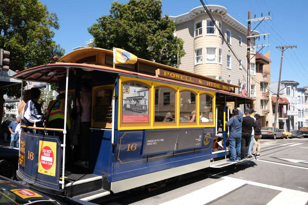 The easiest way to purchase cable car tickets is via the MuniMobile app. A single cable car ride costs $8, and a 1-day passport for buses/streetcars/cable cars costs $13. Fair warning: cable cars are both  functional and fun, which means tourists love them. There were often lines of people waiting to board at each stop, and it became very disappointing to hear “sorry, this car is full, wait for the next car” over and over. After waiting for a few rounds, we successfully boarded the PM train and rode it northward to the end of the line.