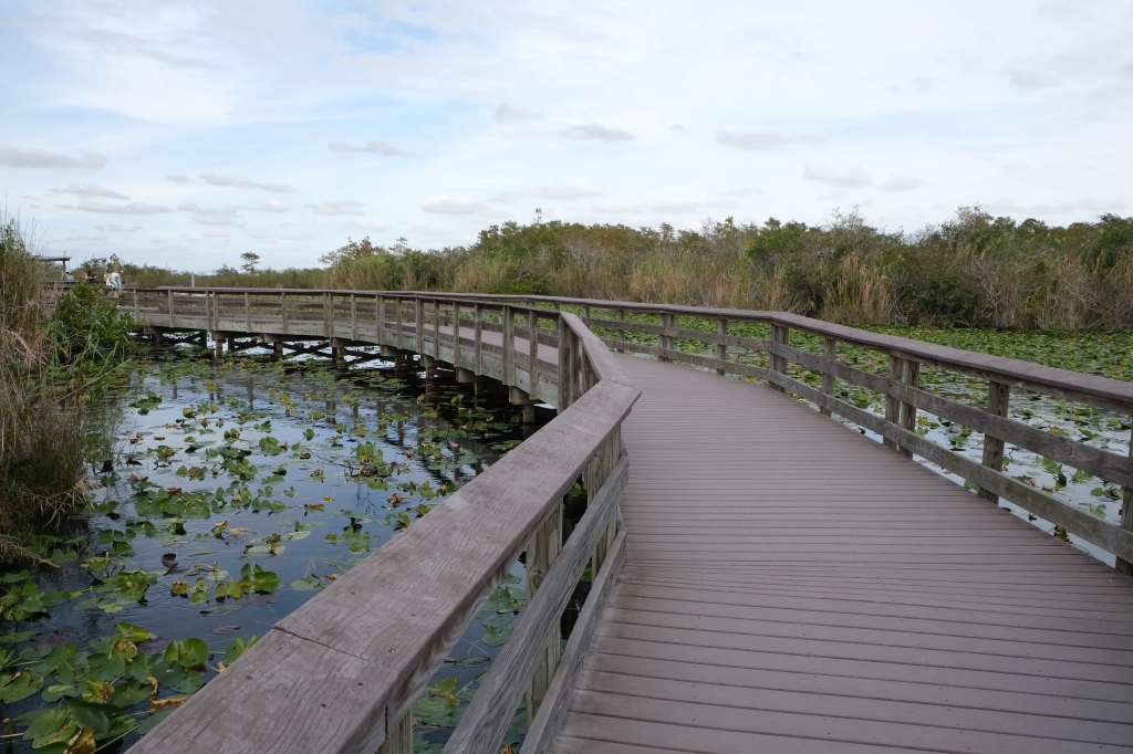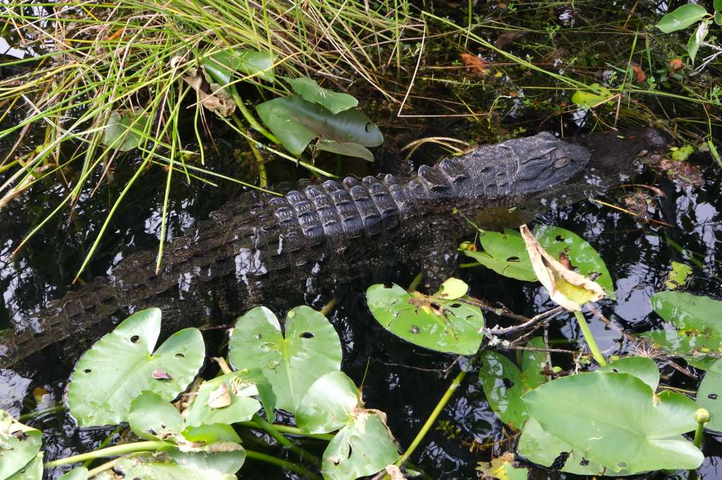 A short 10 minute drive east from Everglades Alligator Farm takes you to the entrance of Everglades National Park. The park fee is $30 per car, or the America The Beautiful parks pass also grants access. Everglades National Park is quite a docile park, with most “hikes” being gentle, flat walkways much shorter than the average national park adventure. We chose the most popular trail, the Anhinga Trail, which is less than 1 mile round trip. This trail is made up of pavement and elevated boardwalks and is accessible by wheelchairs and strollers. Wooden boardwalks elevated above the grasslands give up close views of the water covered with lily pads and studded with grasses. The Anhinga Trail is a good place to spot wild gators, egrets, and fish.