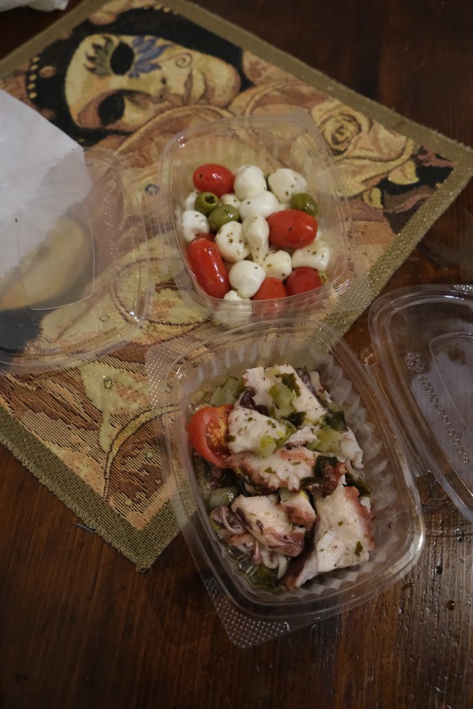 Continuing further north on foot, we made our way to the Cannaregio District, home to the Jewish Ghetto. This area is notably fun to walk around in, a good mix of residential streets, shopping markets, and shops. As night fell on our first evening in Venice, we enjoyed a pistachio gelato and a late night snack of caprese salad and squid antipasto from the Rizzo Venezia bakery before it closed its doors for the night.