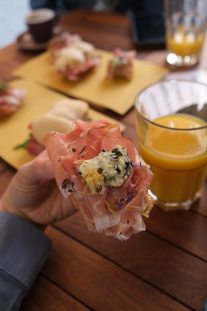 Our last day in Venice demanded a proper breakfast, and what better selection than cicchetti at Ostaria dai Zemei? This little eatery boasted an impressive array of cicchetti, which tasted so much more finely flavored and fresh than the cicchetti we tried the day prior. The bread was delightfully crusty and fresh, the toppings were flavorful and aesthetically topped with dried flower petals. Washed down with fresh orange juice and, of course, espresso, we enjoyed our leisurely breakfast feeling thoroughly Italian as we ate outdoors under umbrellas cooled by a morning breeze and watching the wanderings of neighborhood dogs.