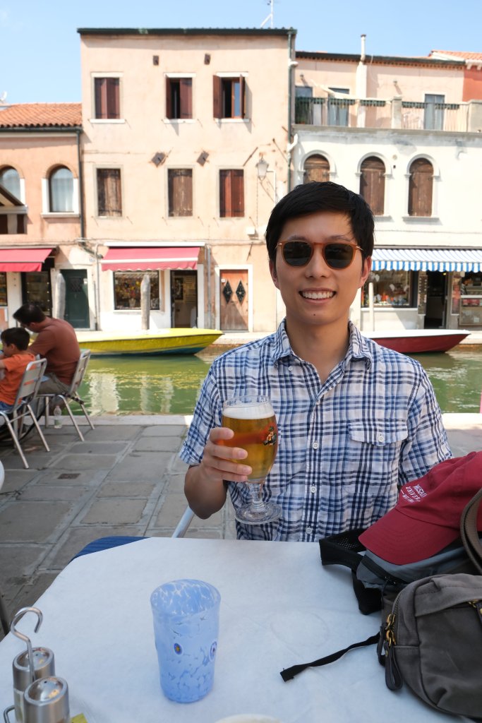 My honest opinion of (most of) Murano? It feels pretty touristy, I have to say. The most visited area is comprised of a large strip of glass trinket souvenir shops and restaurants along the waterway. We enjoyed a couple of beers and a cappuccino while resting on the waterfront before wandering deeper into the more residential part of Murano. Here, we happened upon a restaurant where many locals seemed to be dining.